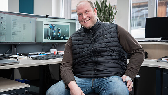 Mein Arbeitsalltag ist sehr abwechslungsreich. Zu den Hauptaufgaben zählen viele Abstimmungstermine mit dem Team. Als Bereichsverantwortlicher sind vor allem Mitarbeiterführung und die Koordination von Projekten wichtige Themen für mich. Ich lege großen Wert darauf, meinem Team Freiräume zu geben und es bei Herausforderungen und Brainstormings zu unterstützen. Die Sicherstellung eines reibungslosen Projektablaufs zählt ebenfalls zu meinen täglichen Aufgaben als Entwicklungsverantwortlicher.